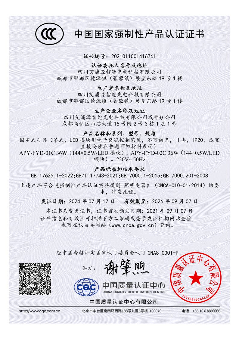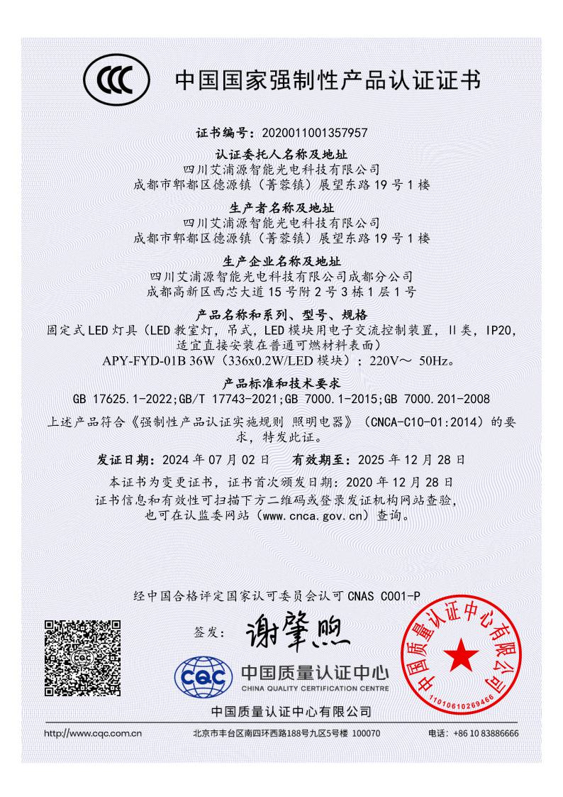 光学防眩教室灯3C认证