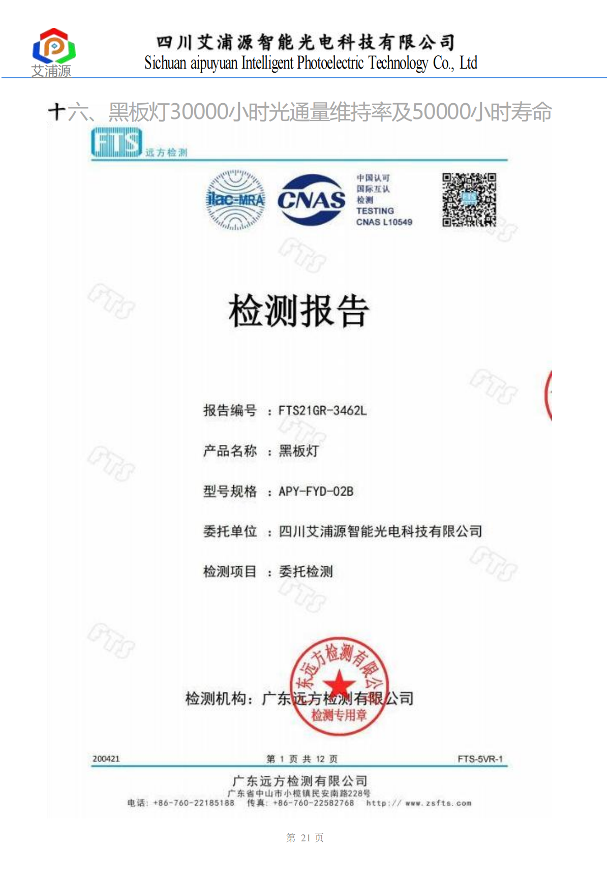 黑板灯检测报告