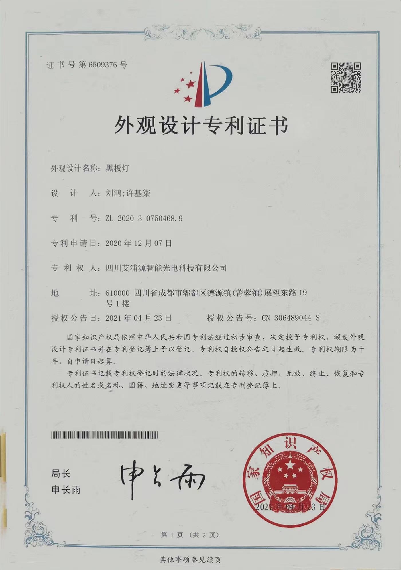 黑板灯外观专利