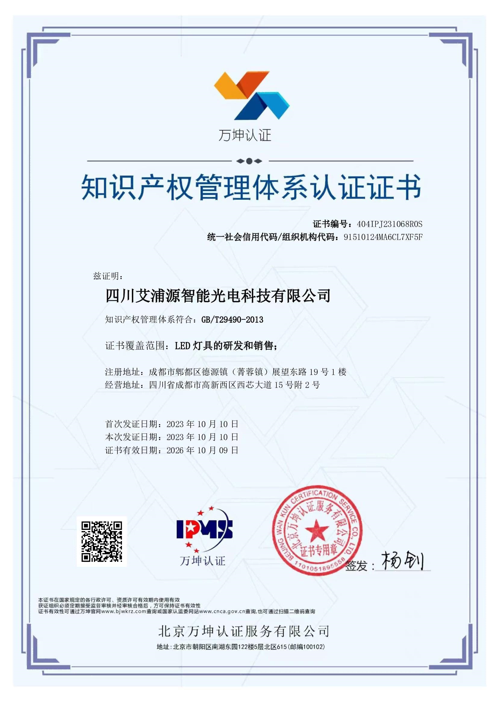 知识产权管理体系证书