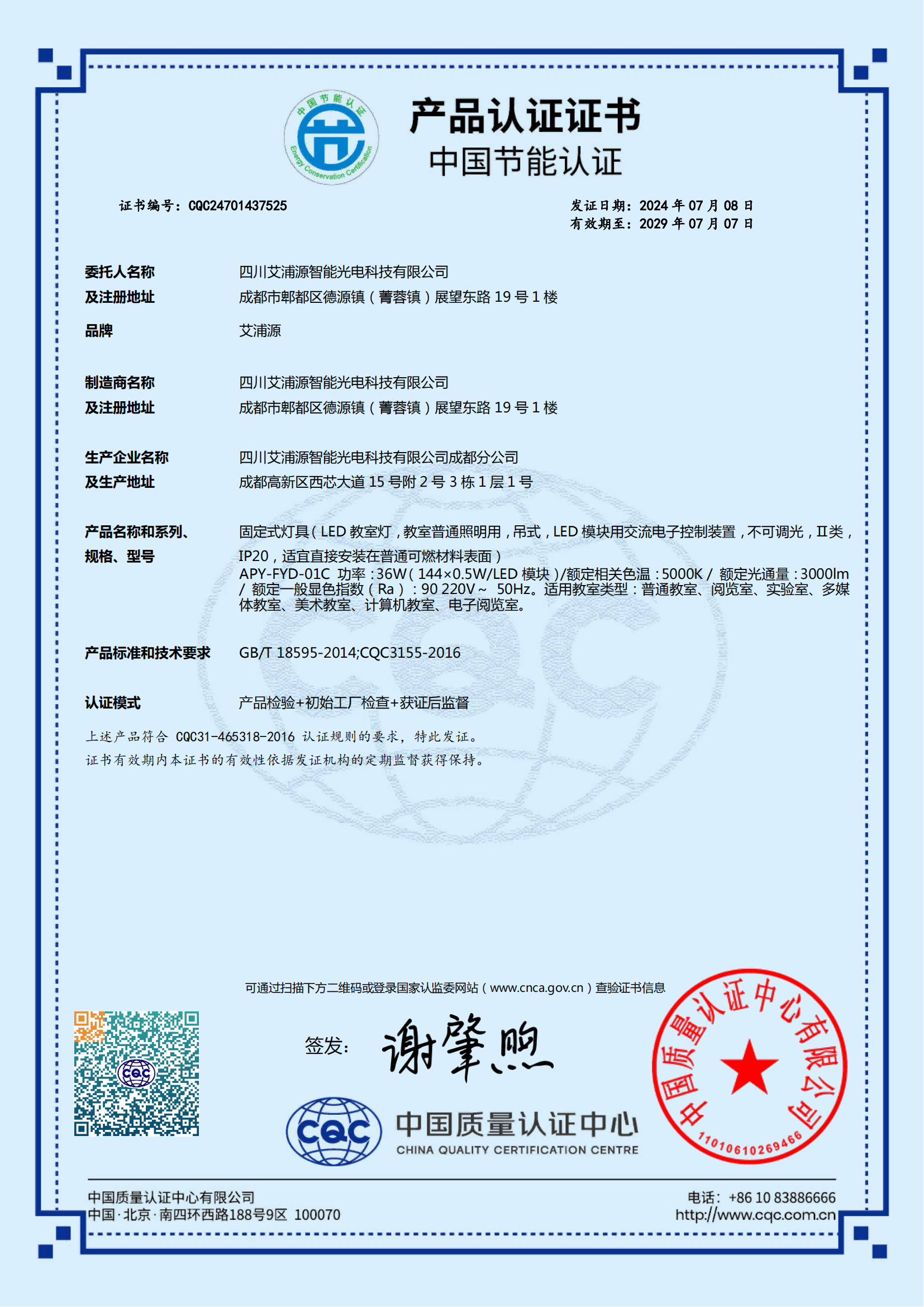 格栅教室灯节能证书