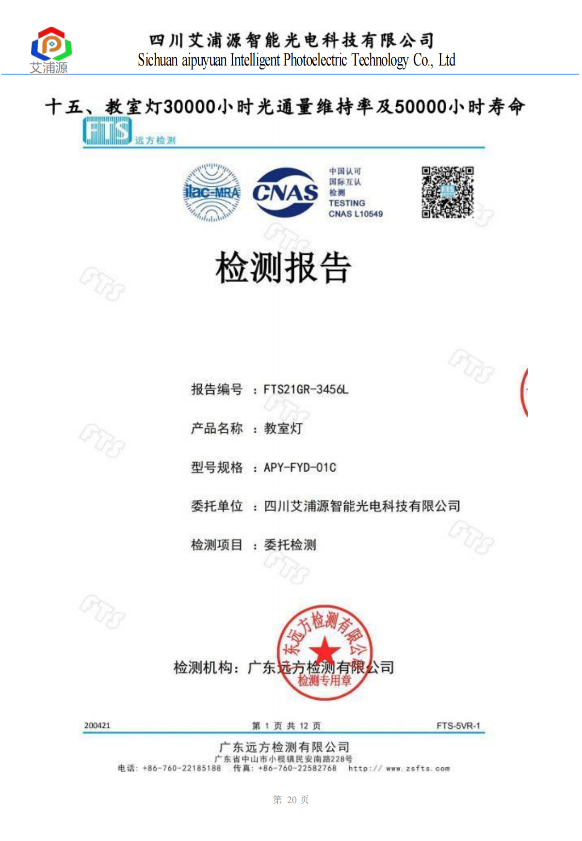 教室灯检测报告