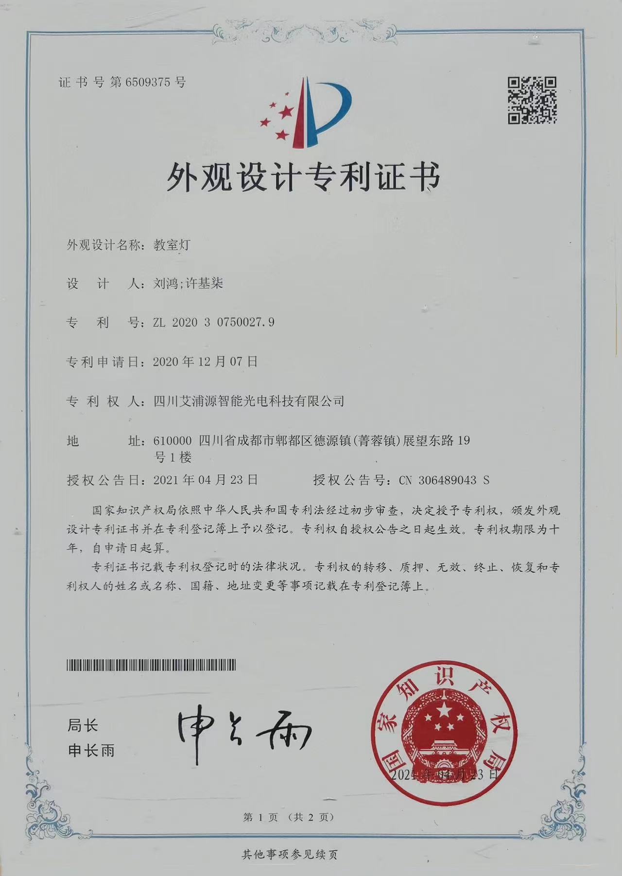 教室灯外观专利